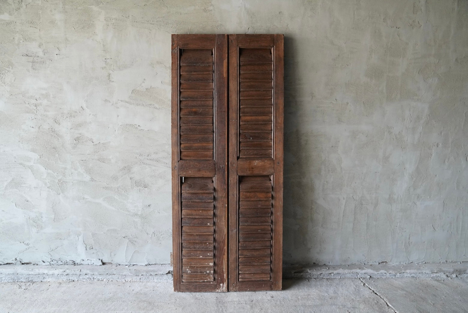 The deep wood tone and overlapping louvers bring a distinctive presence to any space.